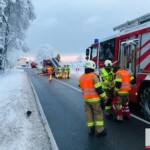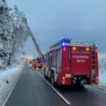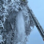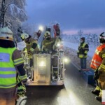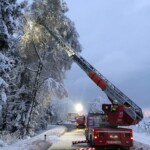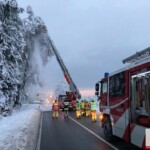 Grund war ein Baum, der aufgrund der Schneelast auf die Straße zu stürzen drohte. Ein großer Ast war bereits gebrochen und musste mittels Kettensäge entfernt werden.