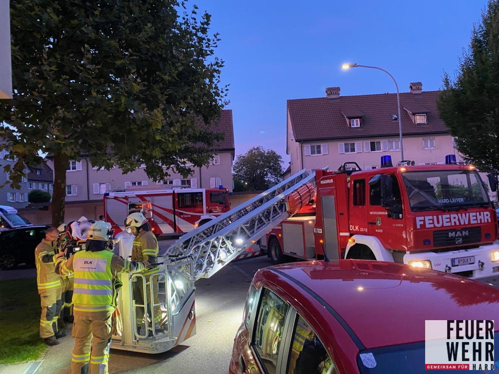 22.09.2021 19:13 f11, r1 drehleiter – HARD KALTENBACHSTRAßE Patientenrettung aus dem 4. OG – Rettungsdienst vor Ort