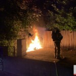Das Feuer, das sich bereits auf einen angrenzenden Zaun und umliegende Büsche ausbreitete, konnte rasch mit einem Hochdruckschlauch gelöscht werden.