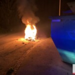 Sonntagnacht wurden wir durch die Rettungs- und Feuerwehrleitstelle zu einem Containerbrand alarmiert. Der Container wurde durch anwesende Personen von der Müllsammelstelle weggezogen. Erste Löschversuche mit einem Feuerlöscher scheiterten.