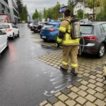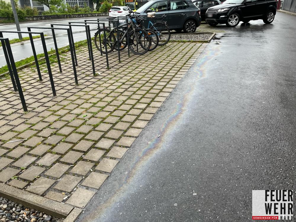 30.4.2022 10:44 t1 HARD RHEINSTRAßE 4 Ölspur auf dem gesamten Parkplatz – Polizei vor Ort