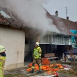 Anschließend führte der eingesetzte Atemschutztrupp einen Innenangriff mit einem C-Strahlrohr durch. Das Feuer konnte kurze Zeit später gelöscht werden und es mussten nur noch letzte Glutnester gesucht und unschädlich gemacht werden. Dafür wurden Teile der Wand und der Zwischendecke eröffnet.