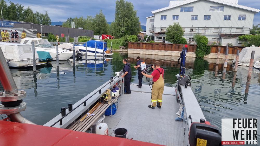 6.6.2022 17:52 t2 HARD HAFENSTRAßE 15 SEEPOLIZEI technischer Einsatz – Dieselfilm im Wasser