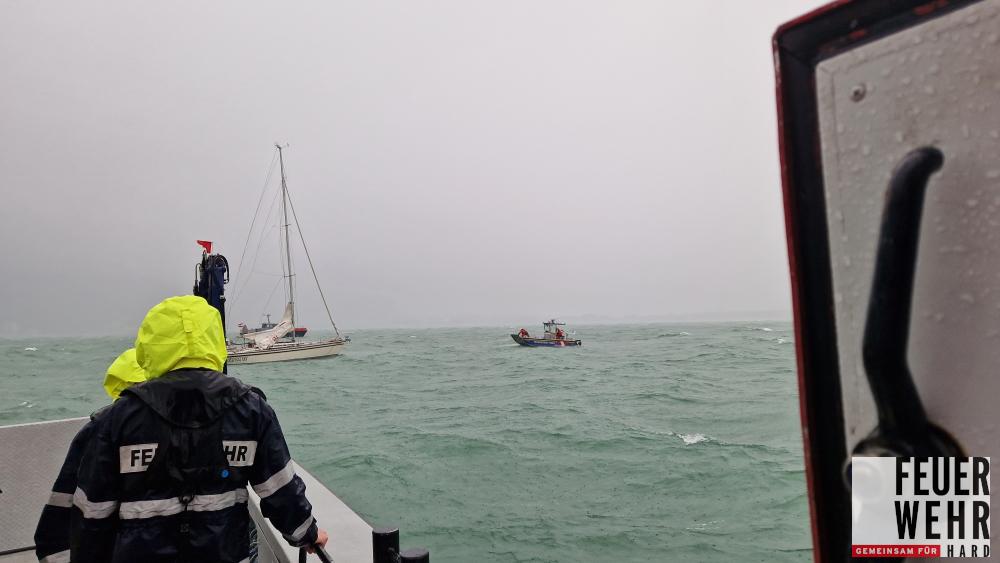 8 Mann besetzten das Feuerwehrboot „Föhn“ und rückten zu dem Havaristen aus. Das Boot konnte zwischen Rheindamm und Lindau ausfindig gemacht und durch die Wasserrettung gesichert werden. Noch während der Bergung des ersten Bootes, ging ein weiterer Alarm ein. Bei einem Boot vor Lochau wurden durch den Wind die Segel zerrissen. Auch dieses Segelboot musste in einen sicheren Hafen gebracht werden. Da die Kollegen aus Bregenz mit ihrem „Pfänder“ den Havaristen sicherten und in den Hafen brachten, konnten wir uns um ein drittes Boot kümmern, welches ebenfalls in Not geraten war.