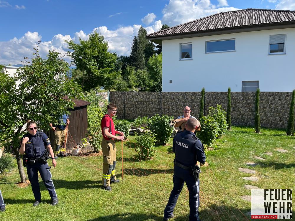 Am 11. Juni wurden wir durch die Polizei zu einem ungewöhnlichen Einsatz gerufen. Eine Schafherde nahm Reißaus und musste eingefangen werden. Bei unserer Ankunft waren noch 2 Schafe auf der Flucht. Sie konnten in einem Garten angetroffen und gefangen werden.