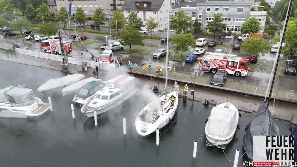 Blitzeinschlag in ein Segelboot im Zollhafen Hard