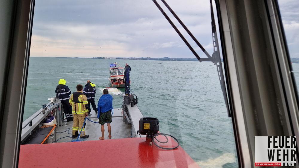Zusammen mit der Feuerwehr Bregenz-Stadt und zwei Rettungsschwimmern, wurde die Jolle wieder aufgerichtet, ausgepumpt und somit wieder schwimmfähig gemacht. Sturmböen bis knapp 100 km/h und Wellengang erschwerten dieses Unterfangen zusätzlich.