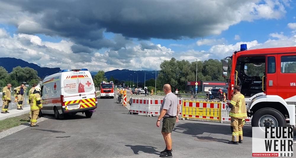 30.7.2023 15:28 t1 HARD L202 RHEINSTRAßE höhe Zech Kieswerk am Radweg neben der Straße – Fahrzeugbergung