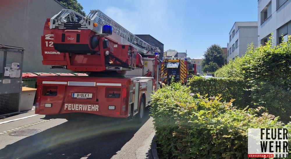 16.8.2023 14:05 f4 BREGENZ VORKLOSTER SCHÖLLERGASSE – Wohnungsbrand im Obergeschoss – Flammen und schwarzer Rauch sichtbar