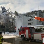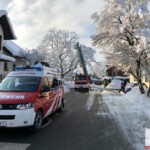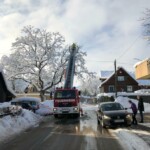 Über den Korb der DLK konnten zwei Feuerwehrmänner den Schnee aus den Ästen schütteln und somit die Gefahr bannen.