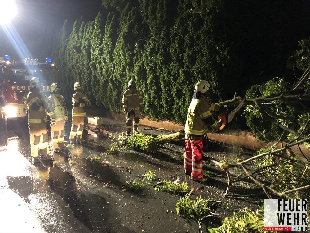 Der Ast wurde mit einer Kettensäge zerteilt und beiseite geräumt. Anschließend konnte die Straße wieder für den Verkehr freigegeben werden.