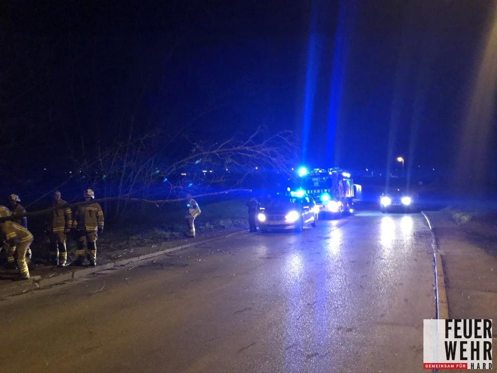 16.12.2019 21:49 t1 HARD MÜHLESTRAßE kurz nach der Unterführung – Baum verlegt Straße