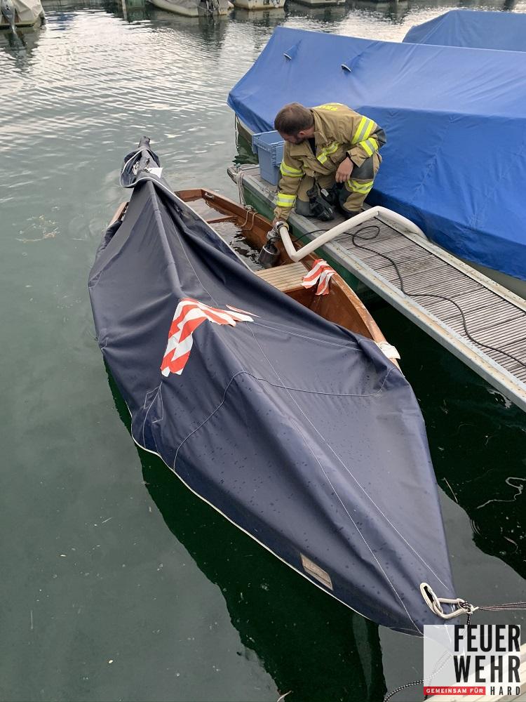 Durch starken Wind und Regen wurde ein Boot abgedeckt und anschließend mit Wasser gefüllt. Der Hafenmeister bemerkte das bei einem Kontrollgang und informierte uns darüber.