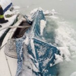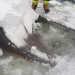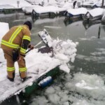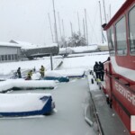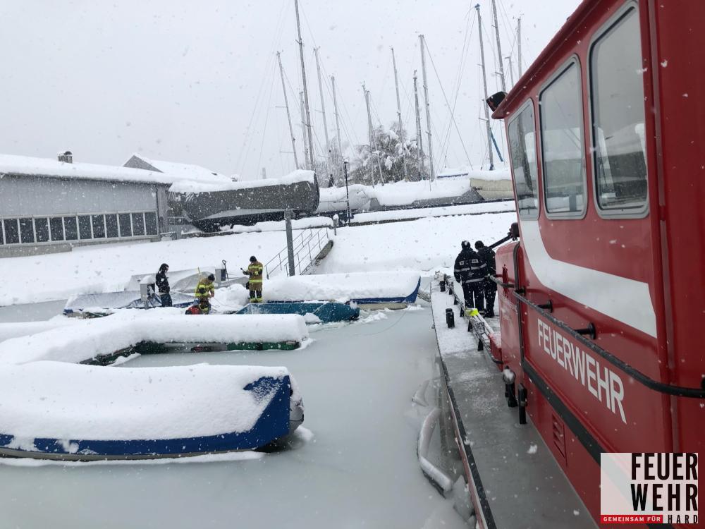 7 Mann rückten mit dem KDOF und dem Feuerwehrboot „Föhn“ zur Einsatzstelle aus. Wie bei den vorherigen Booten, war auch hier die hohe Schneelast der Grund für das Sinken.