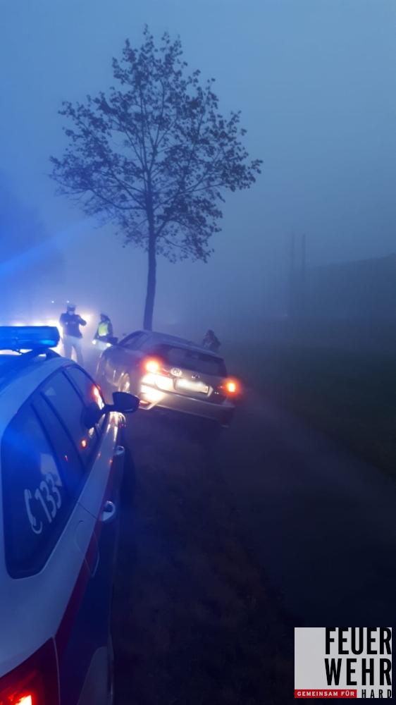 Freitagmorgen, halb 8, wurde eine Gruppe der Feuerwehr Hard zu einem Verkehrsunfall gerufen.