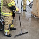 8 Mann machten sich mit dem Kommando-Funkfahrzeug sowie mit dem Versorgungsfahrzeug auf den Weg zur Einsatzstelle. Die Wassermenge war vergleichsweise gering und direkt vor der Kellertüre befand sich ein Abfluss. Deshalb konnte das Wasser ohne Pumpen, mit Hilfe von Wasserschiebern aus dem Keller befördert werden.