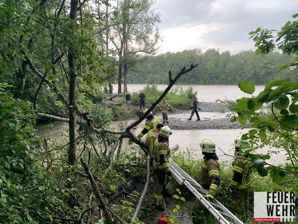 Am frühen Freitagabend war ein Spaziergänger auf einer Insel in der Bregenzer Ache unterwegs. Als er vom steigenden Pegel überrascht wurde und nicht mehr ans Ufer kam, alarmierte er die Rettungskräfte.
