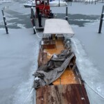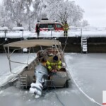 Der zweite Einsatz an diesem Freitag ließ nicht lange auf sich warten. Kurz nach 11 Uhr wurde gemeldet, dass die Persenning und das darunterliegende Gestänge eines Bootes unter der Schneelast nachgegeben hatten.