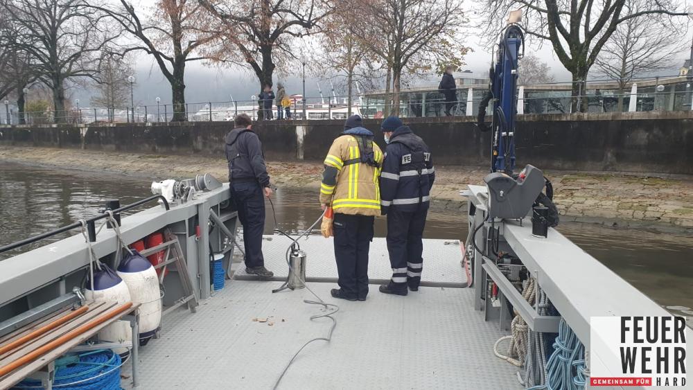 Am Ufer des Bregenzer Thalbachs trat aufgrund eines technischen Defekts Hydrauliköl aus, welches über den Thalbach in den Bodensee gelangte. Wir rückten mit dem Einsatzboot „Föhn“ nach Bregenz aus, um die im bereits im Einsatz befindlichen Feuerwehr Bregenz zu unterstützen.