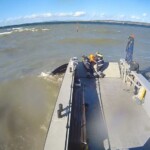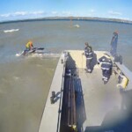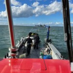 Aufgrund der unklaren Situation, wurden auch deutsche Einsatzboote, sowie der Hubschrauber hinzugerufen. Die Besatzung des Polizeihubschraubers „Libelle“, versuchte den Havaristen mit einem Retter, der am Bergetau hing, zu retten. Da andere Einsatzboote, aufgrund des seichten Wassers, nicht zum Havaristen gelangten und der Rettungsversuch des Hubschraubers abgebrochen wurde, wurde die Person schließlich durch uns gerettet. Nachdem sicher war, dass keine weiteren Menschen in Gefahr waren, konnten wir mit der Bergung des Boots beginnen.