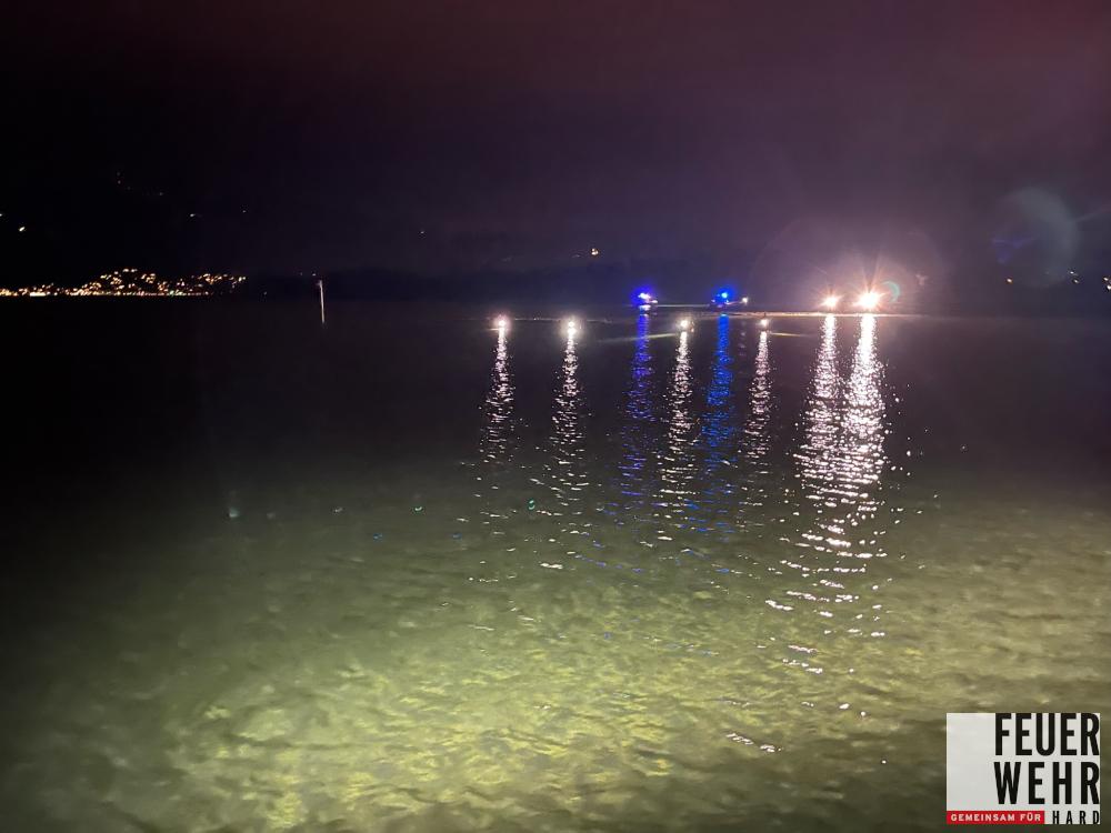 Der betroffene Bereich wurde, zusammen mit der Wasserrettung, abgesucht. Außerdem unterstützen wir die Taucher mit dem Ausleuchten der Wasserfläche. Die Suche blieb erfolglos und so wurde entschieden, dass die Suche bei Tageslicht fortgesetzt wird.