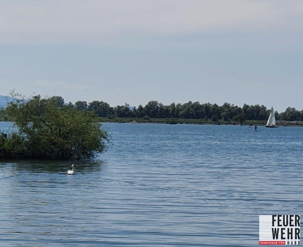 Nachdem die Bootsmannschaft den Schwan aufgespürt hatte, konnte festgestellt werden, dass der Schwan ein Stück Angelschnur hinter sich her zieht. Der Bootsmannschaft gelang es nach kurzer Zeit den Schwan zu fangen und ihn von der Schnur zu befreien. Somit konnte er nach wenigen Minuten wieder ungehindert und unverletzt Richtung Bodensee schwimmen.