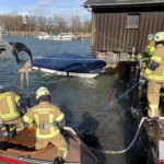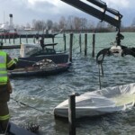 Das gesunkene Boot wurde mit einem Kran aus dem Wasser gehoben, ausgepumpt und ausgewassert.