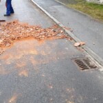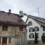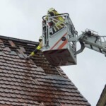 Gehsteig und Straße mussten abgesichert werden, lose Ziegel entfernt und Dächer notdürftig repariert werden. Insgesamt waren, bis spät am Abend, 13 Einsätze zu bewältigen.
