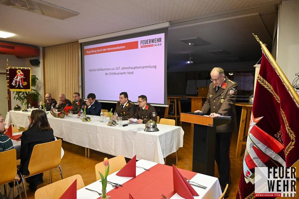 Am 17. Januar 2025 fand im Gerätehaus der Ortsfeuerwehr Hard die 147. Jahreshauptversammlung statt. Unter den zahlreichen Gästen durfte Kommandant Christian Medwed neben den Mitgliedern der Ortsfeuerwehr, den Abschnittsfeuerwehrkommandanten des Abschnittes Rheindelta Christian Geißler, Bürgermeister Martin Staudinger, Vertreter der Gemeindepolitik (Elfriede Bastiani, Sandra Jäckel, Rene Bickel, Herbert Motter), sowie Vertreter der befreundenden Blaulichtorganisationen (Dietmar Sieber, Michael Quendler, Philipp Dremmel, Petra Gebhard) rechtherzlich begrüßen.