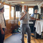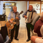 Bald schon entwickelten sich anregende Gespräche an den Tischen und weitere Getränke wurden schon rasch serviert. Zur Unterhaltung musizierte die Abordnung des ehemaligen „Blum Trio´s“, Arno und Heinz Blum. Die Musikanten spielten auf Initiative von Helmut Gassner ohne Gage für die Gäste an Bord, wofür sich Obmann Bereuter bei Helmut und den Musizierenden herzlich bedankte.