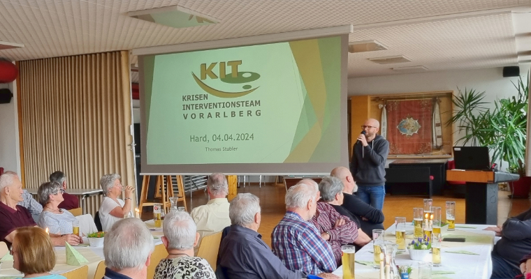 Der Einladung zum Vortrag über die Strukturen, Organisation und Aufgaben des Vorarlberger Kriseninterventionsteams war der hauptamtliche Mitarbeiter Hr. Thomas Strubler gefolgt. Anhand von persönlichen Erlebnissen gelang es dem Vortragenden, die anspruchsvollen und anfordernden Aufgaben der Begleitung und Bewältigung in Krisensituationen den Zuhörerinnen und Zuhörern näherzubringen.