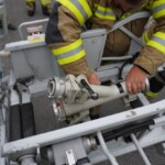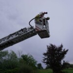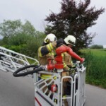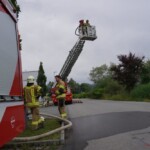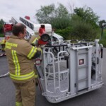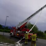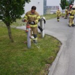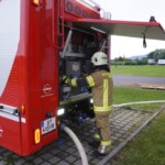 Bei der letzten Gruppenübung, welche am Montag stattfand, war die Ausbildung der Löschgruppe mit Einbeziehung der Drehleiter im Mittelpunkt. Mit Hard Tank und der DLK 23-12 bewegten sich einige Kameraden auf ein nahe gelegenes Firmengelände, wo ein Hydrant als Wasserbezug zur Verfügung stand. Nach dem die Löschwasserversorgung zu Hard Tank aufgebaut wurde, konnte die Zubringerleitung zur mittlerweile einsatzbereiten Drehleiter errichtet werden. Danach wurden die verschiedenen Löscharmaturen (Wasserwerfer 1.200 l/min, Löschmonitor 2.400 l/min) auf dem Drehleiterkorb installiert und in Betrieb genommen.