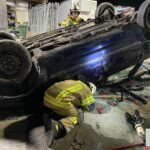 Von den Übungsvorbereitern wurden zwei verschiedene Unfallszenarien ausgearbeitet. Beim ersten Szenario, wurde angenommen, dass sich ein PKW überschlagen hatte und der Beifahrer noch im Fahrzeug eingeklemmt war.