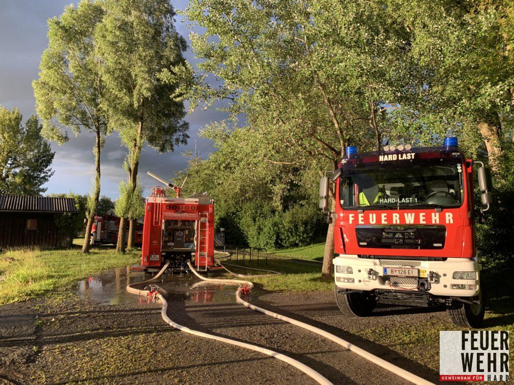 Bei der letzten Maschinistenübung hatten wird das Thema Wasserförderung über lange Strecken. Wir fuhren mit Hard TANK, Hard DLK, Hard LAST1 und Hard FÖHN in Richtung Auhafen. Dort angekommen mussten wir über eine Strecke von ca. 120 Meter eine Zubringerleitung von Hard Föhn zu Hard TANK herstellen. Danach konnten wir die Wasserversorgung zur Drehleiter aufbauen die bereits in Stellung gebracht wurde. Der Schulungsschwerpunkt bei dieser Übung war die Gewährleistung einer kontinuierlichen Wasserversorgung bei variierender Löschwasserabnahme durch verschiedene Löscharmaturen.