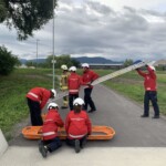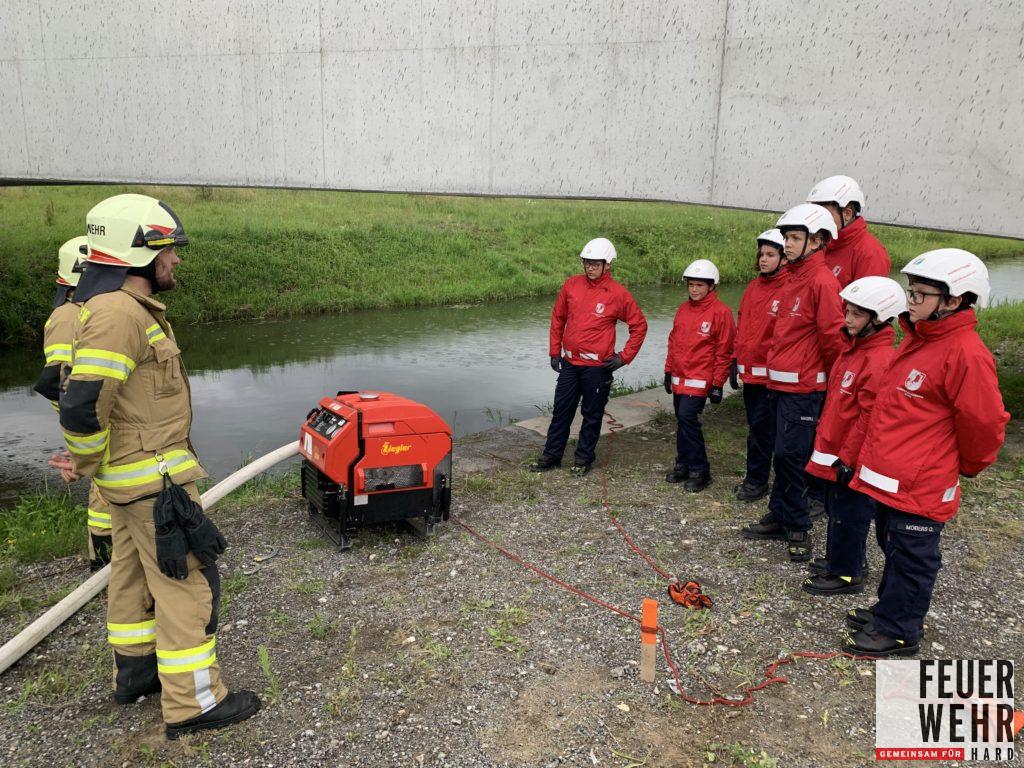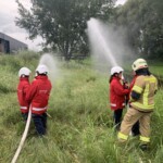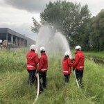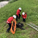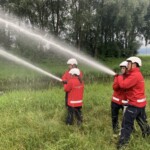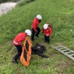 Löschangriff und Personenrettung war das Thema unserer letzten großen Jugendübung vor der Sommerpause. Am Übungsort angekommen, hieß es „absitzen“ und antreten zur Befehlsausgabe. Übungsannahme war ein Böschungsbrand im Bereich des Lustenauer Kanals sowie eine verunglückte Person nach einem Fahrradunfall. Es wurde die TS (Tragkraftspritze) in Stellung gebracht und eine Löschleitung aufgebaut. Mittels zwei C-Strahlrohren wurde der vermeintliche Böschungsbrand erfolgreich von den Jugendliche gelöscht. Danach ging es mit der Schleifkorbtrage und einer Steckleiter zur Personenrettung auf die andere Seite des Kanals. Bei dieser Übung konnten die Jugendlichen das erlernte Wissen der letzten Stationsbetrieb-Übungen erfolgreich unter Beweis stellen.
