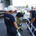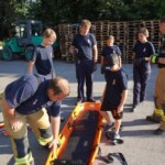 Diese Woche stand bei unserer Jugendübung die Personenrettung und der Leiterdienst – zwei wichtige Themen – auf dem Schulungsprogramm. Mittels verschiedener Leitern – Steckleiter, Schiebeleiter – wurde die richtige Handhabung und deren Verwendung beübt. Bei der zweiten Station wurden die Möglichkeiten der Rettungsgeräte – Rettungstrage, Schleifkorbtrage, Notrettungs-Set – erklärt und in Kombination mit der Drehleiter umgesetzt.