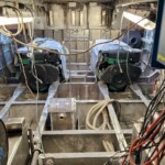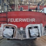 Vor 2 Monaten wurde das Feuerwehrboot „Föhn“ ausgewassert und nach Linz transportiert. Seither ist viel passiert. Die alten Motoren und Antriebe wurden ausgebaut, der Motorraum gereinigt, die Schweißarbeiten abgeschlossen, neue Belüftungsöffnungen für den Motorraum verbaut und elektrische Komponenten teilweise entfernt.